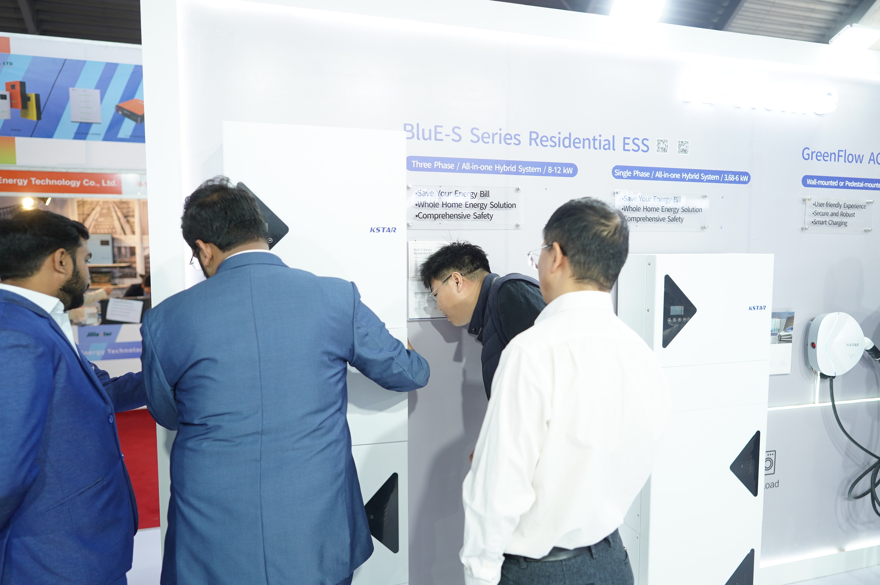 For residential solutions, KSTAR showcases a range of residential products, including the BluE-S, BluE-G, BluE, SKY, and Knight Series, along with the GreenFlow AC chargers. These PV systems, energy storage systems, and AC charging solutions help homeowners enjoy greater control over their energy usage, reduce dependence on the grid, and support a sustainable lifestyle.