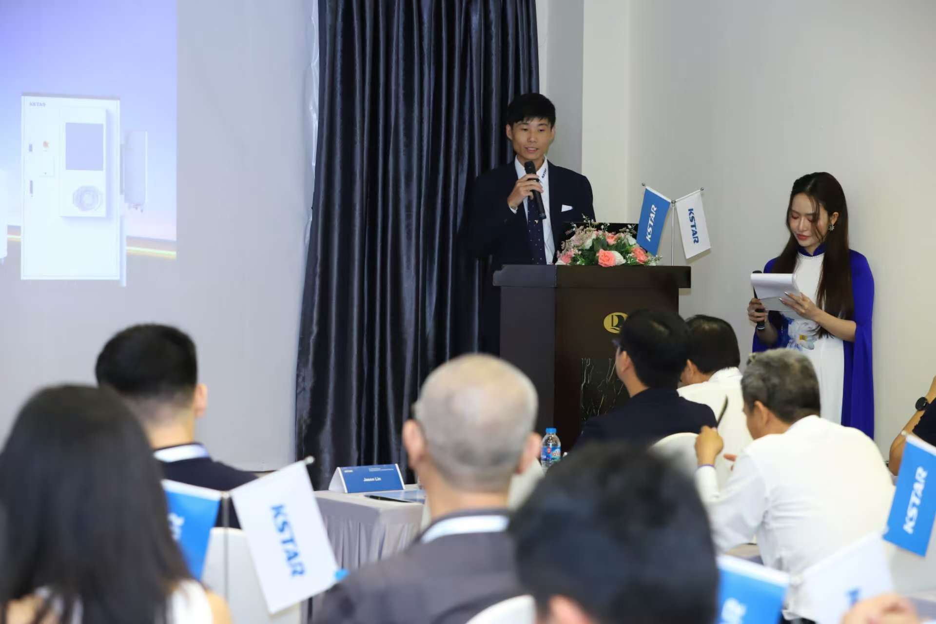 The event commenced with a deep technical presentation by Mr. Hung Dao, Tech Head APAC at KSTAR, titled "Engineering Reliable C&I Microgrids: A Deep Dive into KSTAR's High-Efficiency Inverters and Scalable BESS Architecture." He highlighted KSTAR's PV inverter portfolio designed for comprehensive scenario coverage. For large-scale ground-mounted power plants, KSTAR's BlueWave Series 350kW inverters, G350KTHC and G350KTH, boast a maximum efficiency of up to 99% and a 1500V DC system, with its 16 independent MPPT tracks significantly enhancing energy yield in complex terrains. For commercial and industrial distributed generation scenarios, KSTAR's BlueKernel Series 125kW inverter G125KY7 delivers a reliable solution with 98.7% efficiency and a compact design. This demonstrates KSTAR's strong technical capability and comprehensive product portfolio to meet diverse market demands, from distributed energy resources to utility-scale power plants.