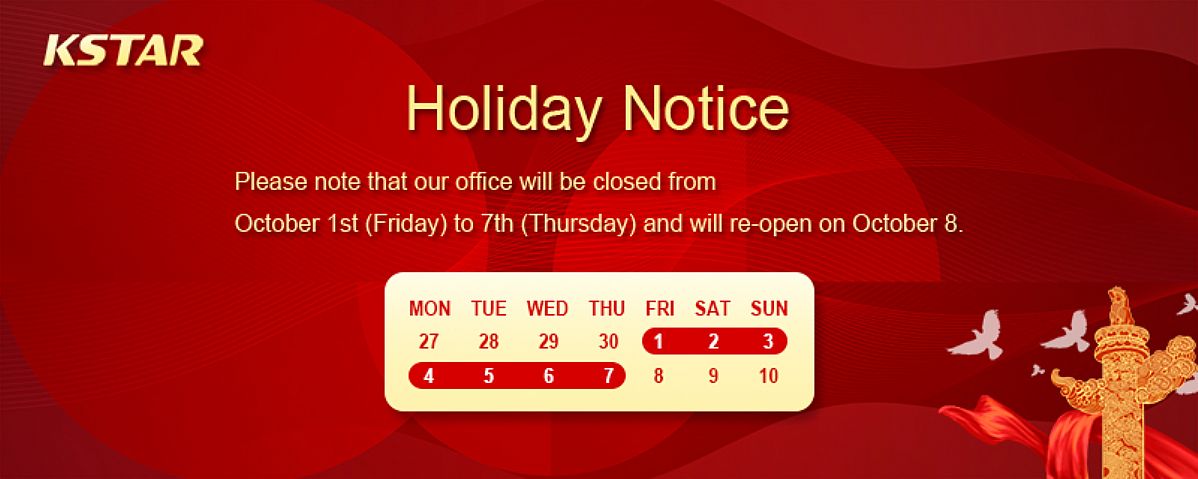 Please note that our office will be closed from October 1st to Octorber 7th for Chinese National Holiday. We will respond to your message on October 8th when we return to the office and we suggest you arrange your earier business inquiry before the holiday.